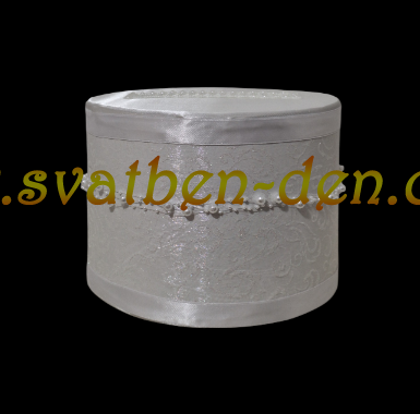 Малка кутия за бутикови сватби.Кутията е изработена с бял сатен ,бяла органза и обвита с перли.