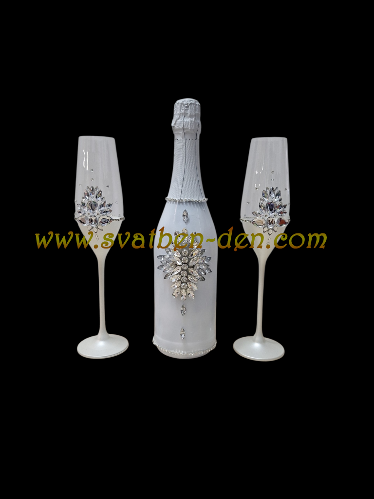 Сватбено шампансо бяло с качъни.Цена за чашите 29.65 евро.