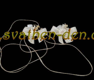 Украсено шампанско с натурални материали-пухчета,гипсофил,прозрачни листа.